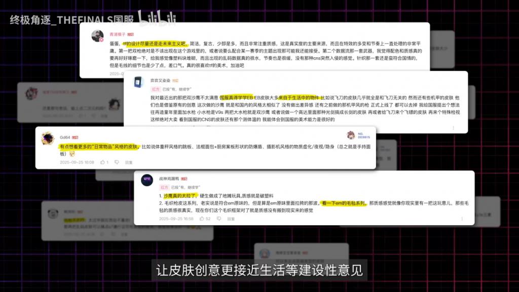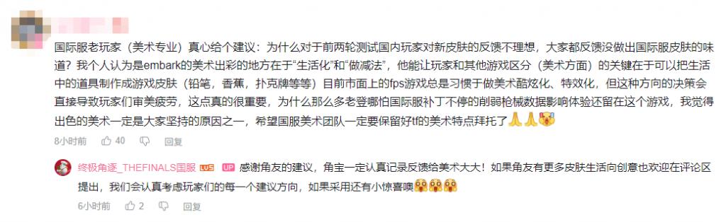 《终极角逐》的主美 Migo,也通过运营团队收集到玩家在评论区对于皮肤外观、特效提出的优化建议,表示将在后续更新中积极采纳可行的方案。