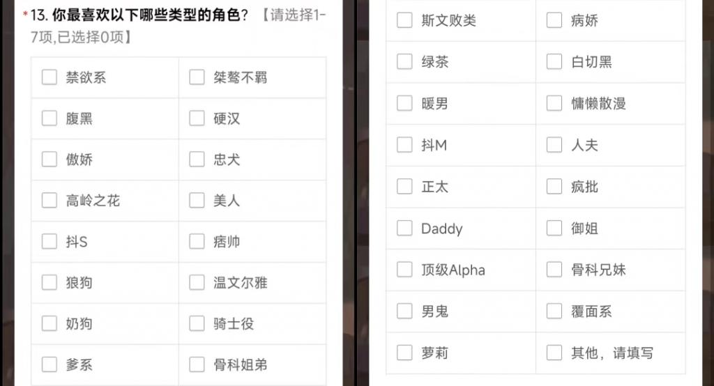 首测问卷中纳入了 "Daddy"、" 骨科 "、" 覆面系 " 等小众偏好,说明制作组应该早已有考虑这方面的人设,再从玩家反馈中得到一定程度的验证。
