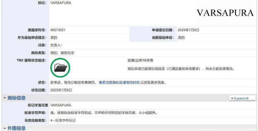 彼时正是 Varsapura 提交注册商标,并创建诸多社交账号的时间点。